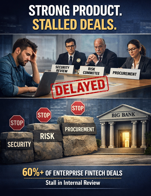A Series A fintech founder came to me frustrated. Strong product.Clear demand.Enterprise logos in pipeline. Yet deals kept stalling at the same stage. Security review.Risk committee.Procurement. Sales blamed “slow...