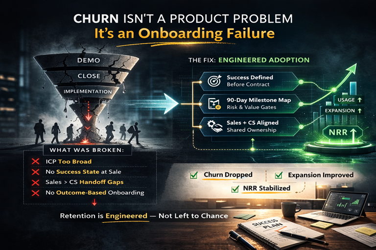 A Series A fintech platform came to me frustrated. Strong demos.Fast closes.Solid initial traction. But 6–9 months later? Accounts were churning. Not loudly.Quietly. Usage plateaued.Expansion never triggered.Renewals became negotiations....