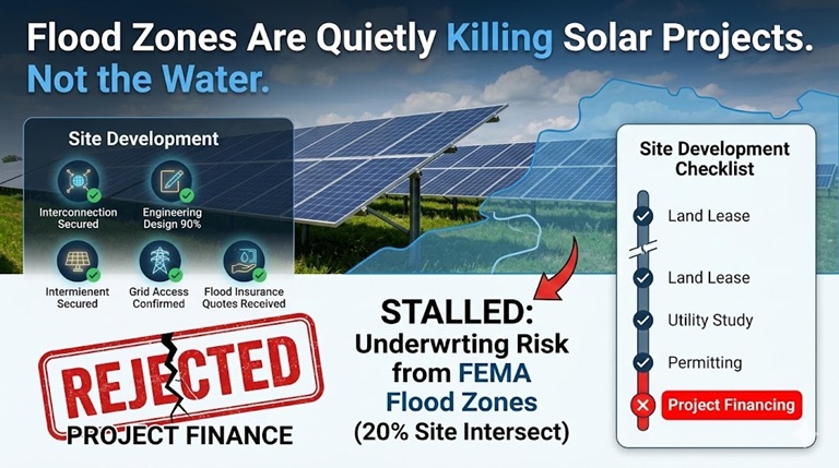Flood zones are quietly killing utility-scale solar projects.