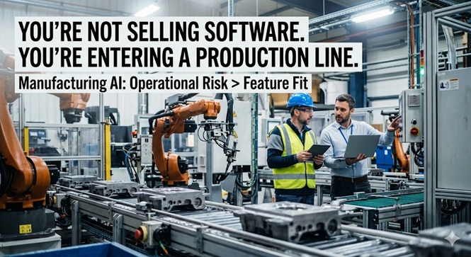 Most founders treat manufacturing AI like SaaS. Demo → Pilot → Close. Then wonder why deals stall for months. Here’s the mistake: You’re selling features.They’re evaluating operational risk. In...
